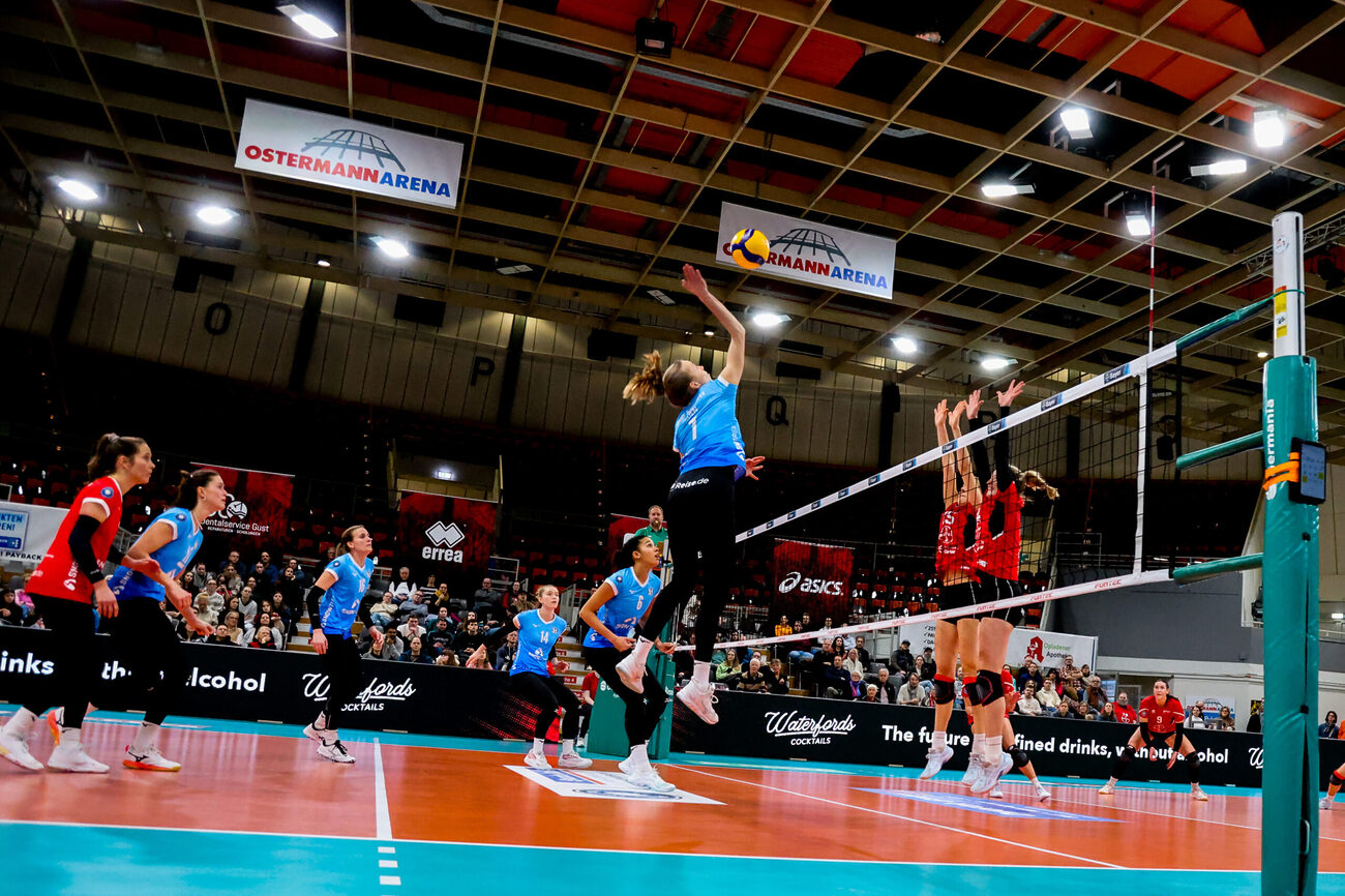 Der erste Satz begann ausgeglichen und entwickelte sich zu einem wahren Krimi. Köln zeigte sich kämpferisch und erarbeitete sich beim Stand von 24:23 sogar einen Satzball. Doch die Leverkusenerinnen bewiesen Nervenstärke und sicherten sich mit drei aufeinanderfolgenden Punkten den Satz mit 26:24. Eine verpasste Chance für Köln, die den weiteren Spielverlauf maßgeblich beeinflussen sollte.